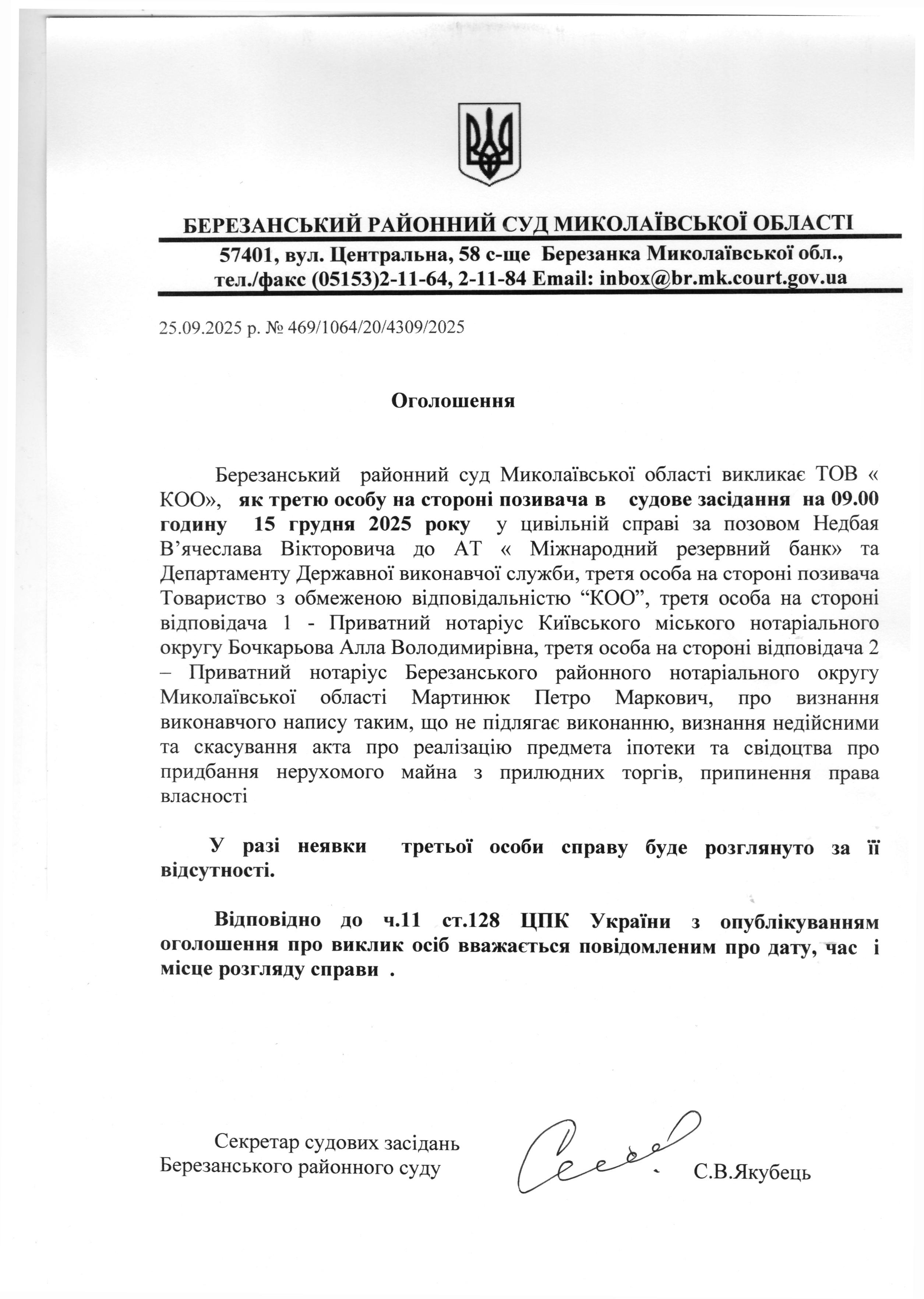 Виклик до суду ТОВ "КОО" та ін.