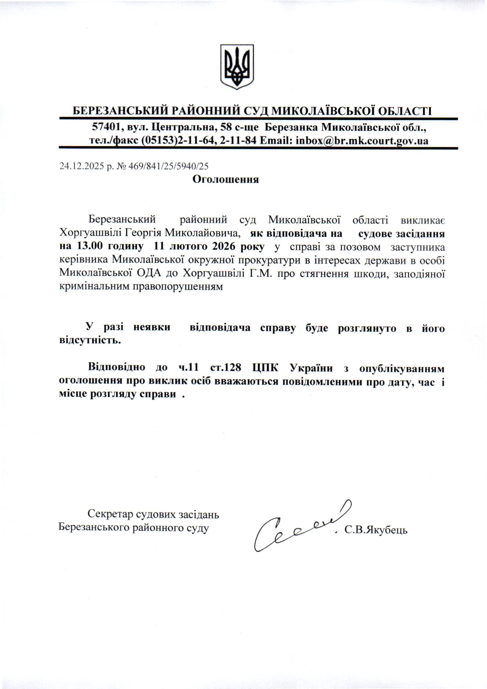 Виклик до суду Хоргуашвілі Г.М.