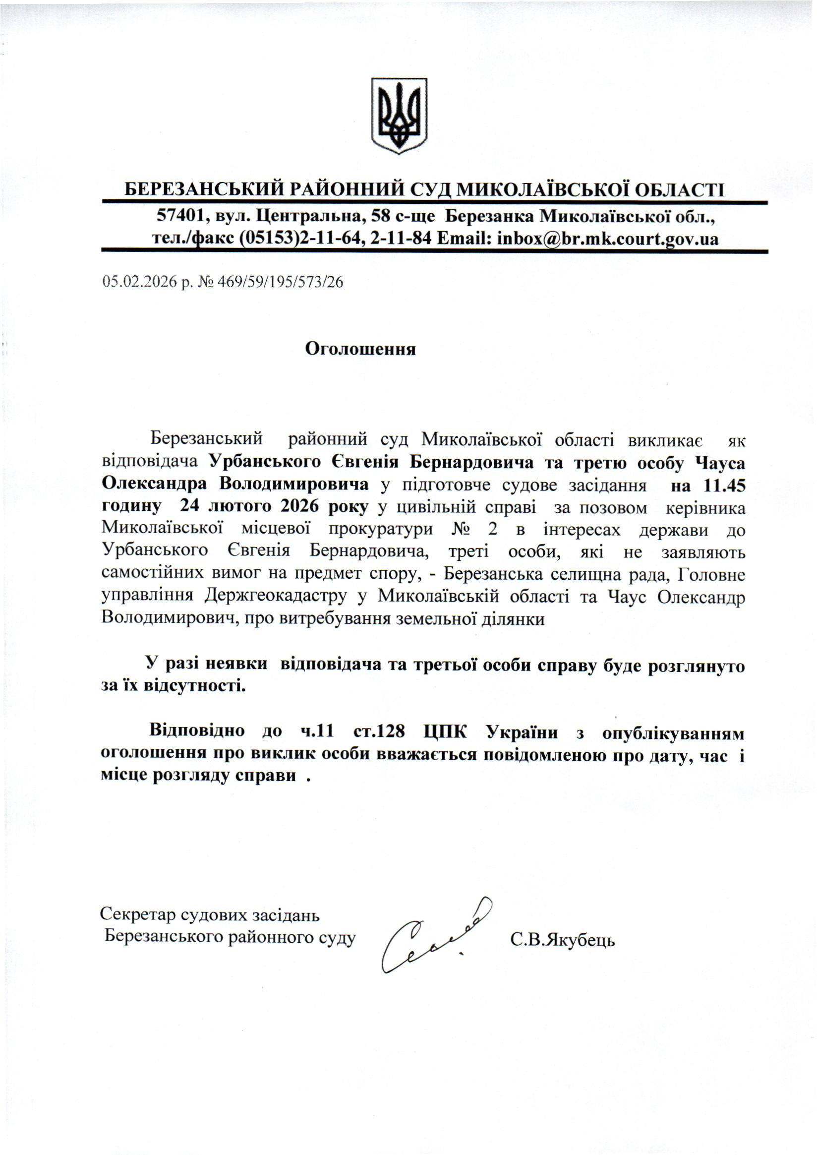 Виклик до суду Урбанського Є.Б. та Чауса О.В.
