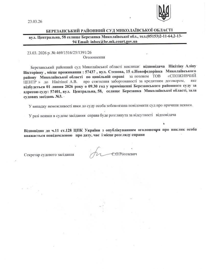 Виклик до суду Нікітіну А.В.