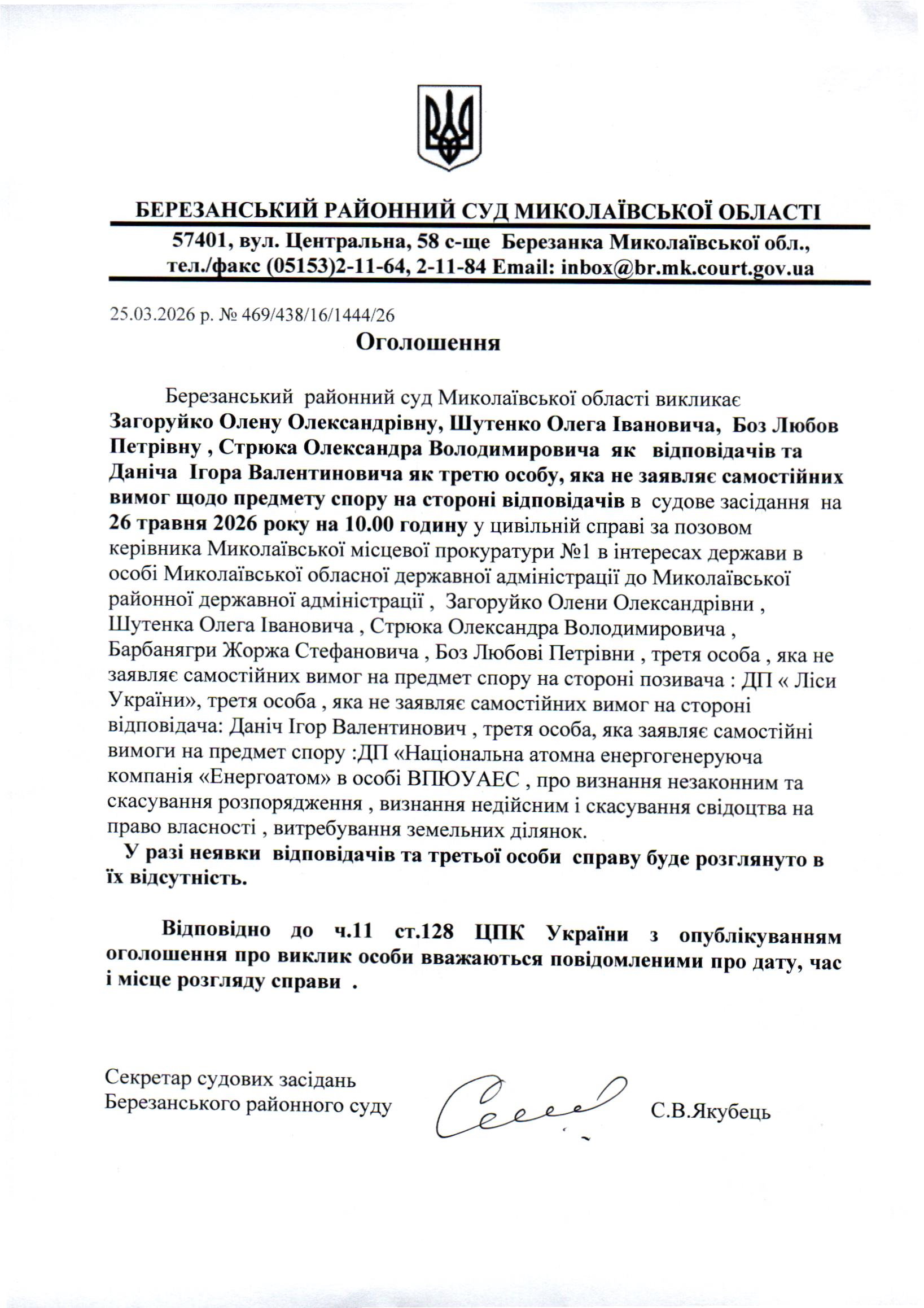 Виклик до суду Загоруйко О.О., Шутенко О.І., Боз Л.П., Стрюка О.В. та Даніча І.В.