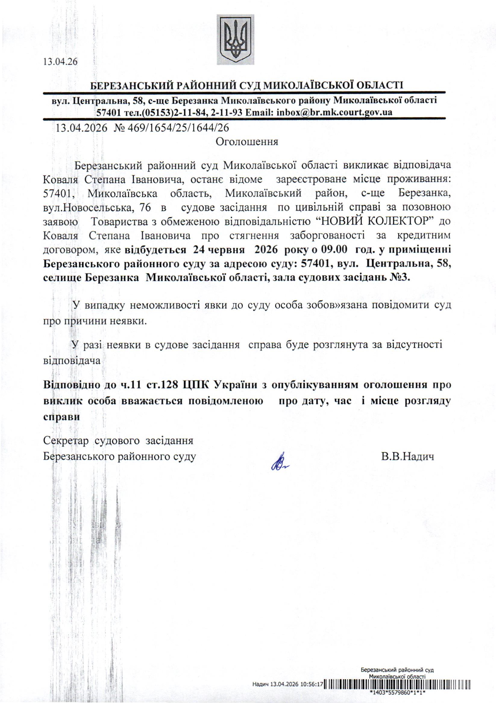 Виклик до суду Коваля С.І.