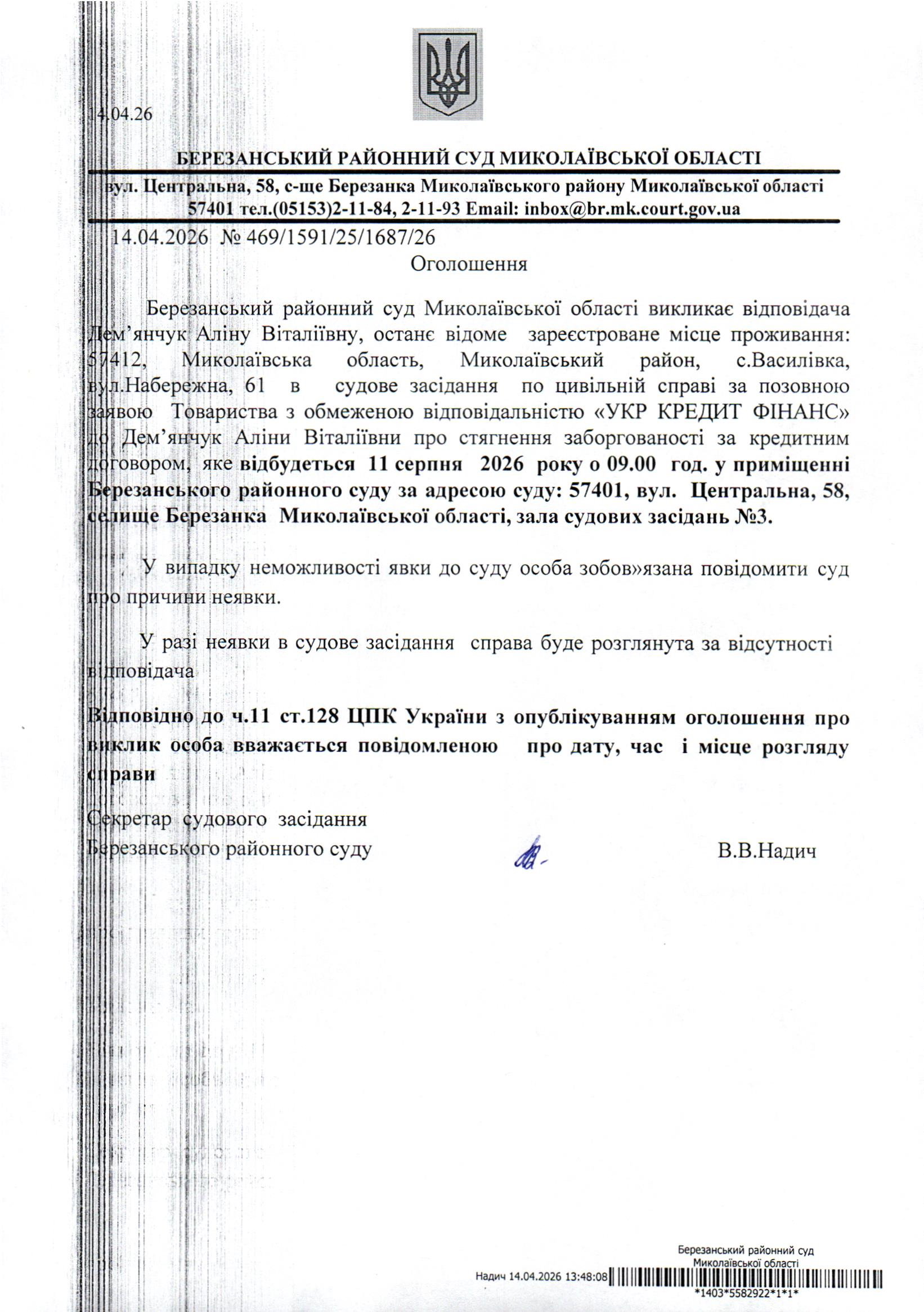Виклик до суду Дем'янчук А.В.